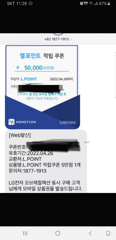 그래서 끄려는 찰나에 커피쿠폰이나 상품권 등과 같이