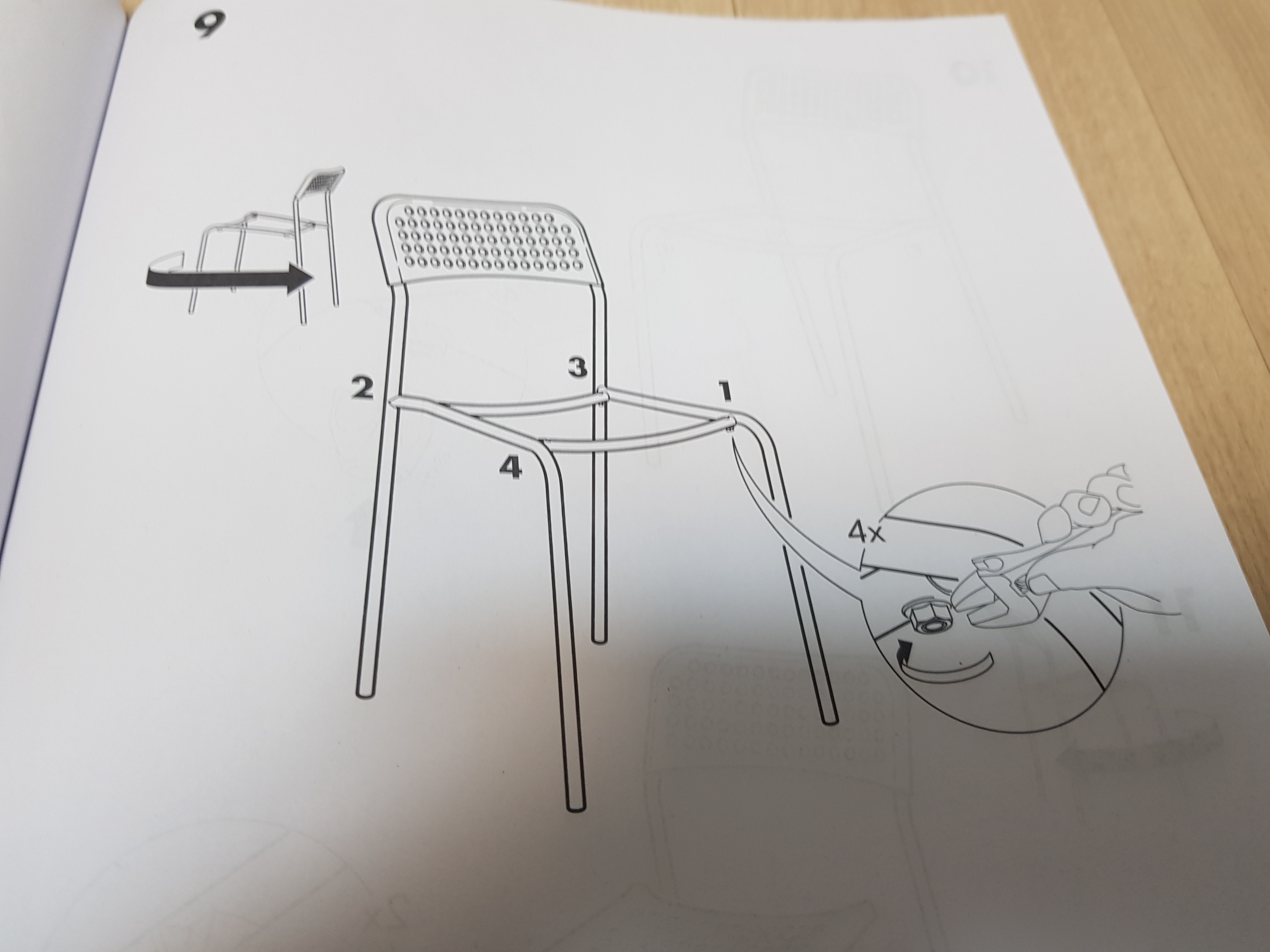 9번에 보면 등받이를 붙인 이후에 공구로 조으라고 되어 있습니다.