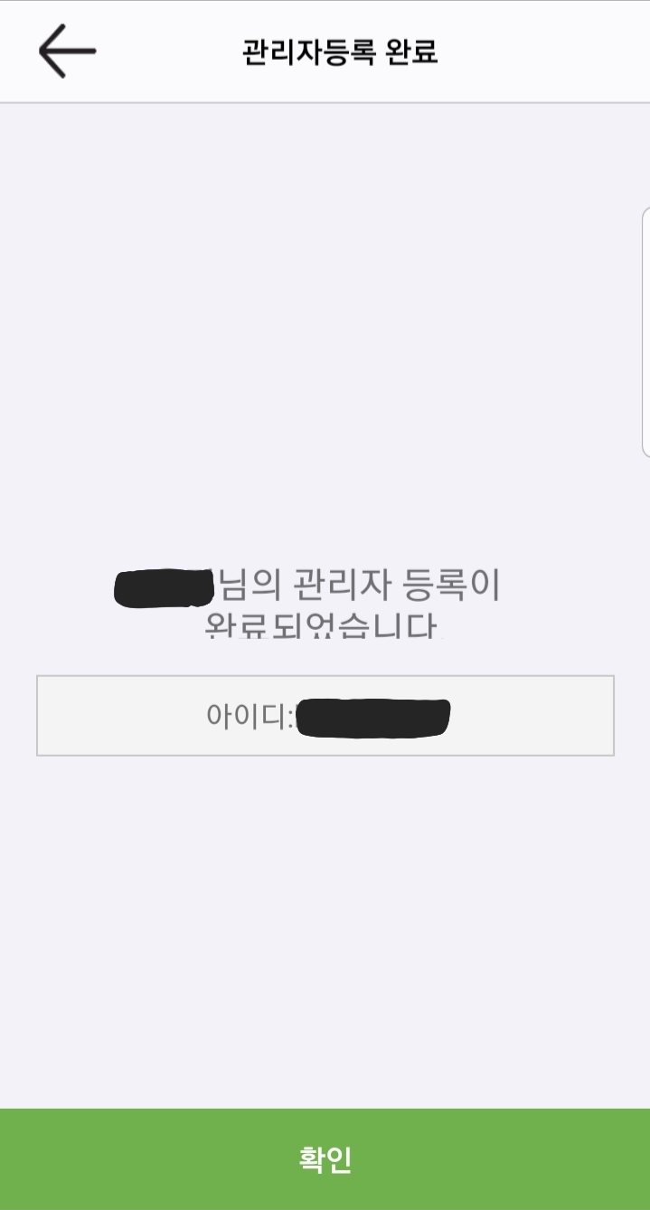 'XXX님의 관리자 등록이 완료되었습니다.'라는 멘트와 함께