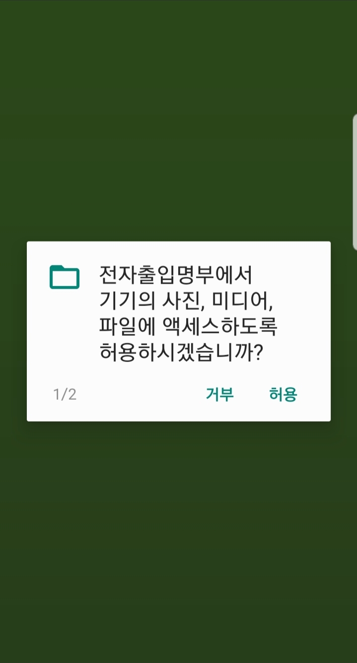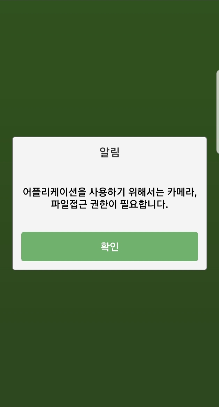 카메라 구동과 파일 접근 권한인데 모두 승인을 해주시면 됩니다.