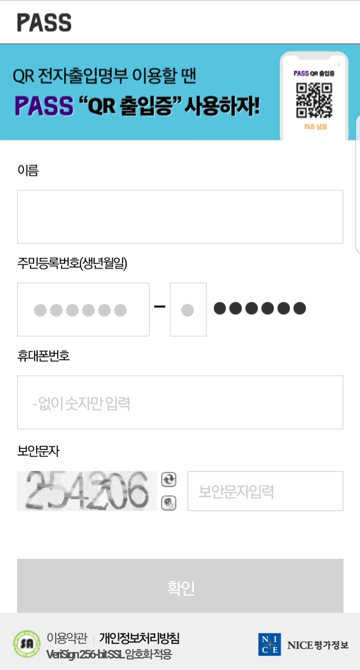 QR코드로 체크인 하는 곳에서는 개인 명의인 스마트폰을 이용해서 체크인을 하고