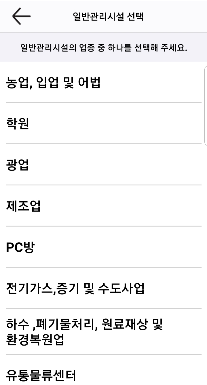 저는 '일반관리시설'에 해당되었으므로 일반관리시설을 선택했습니다.