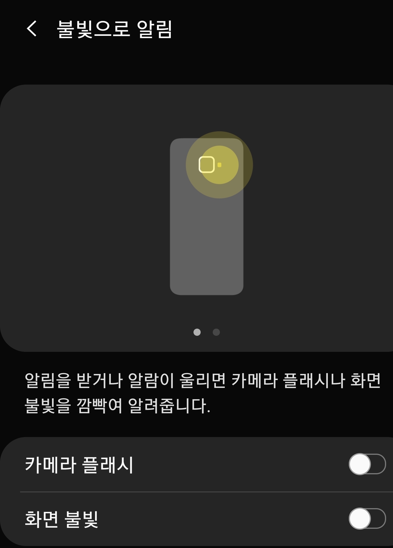 불빛으로 알림에 들어가면 라이트로 알려주는 것이 2가지로 구분되어 있습니다.