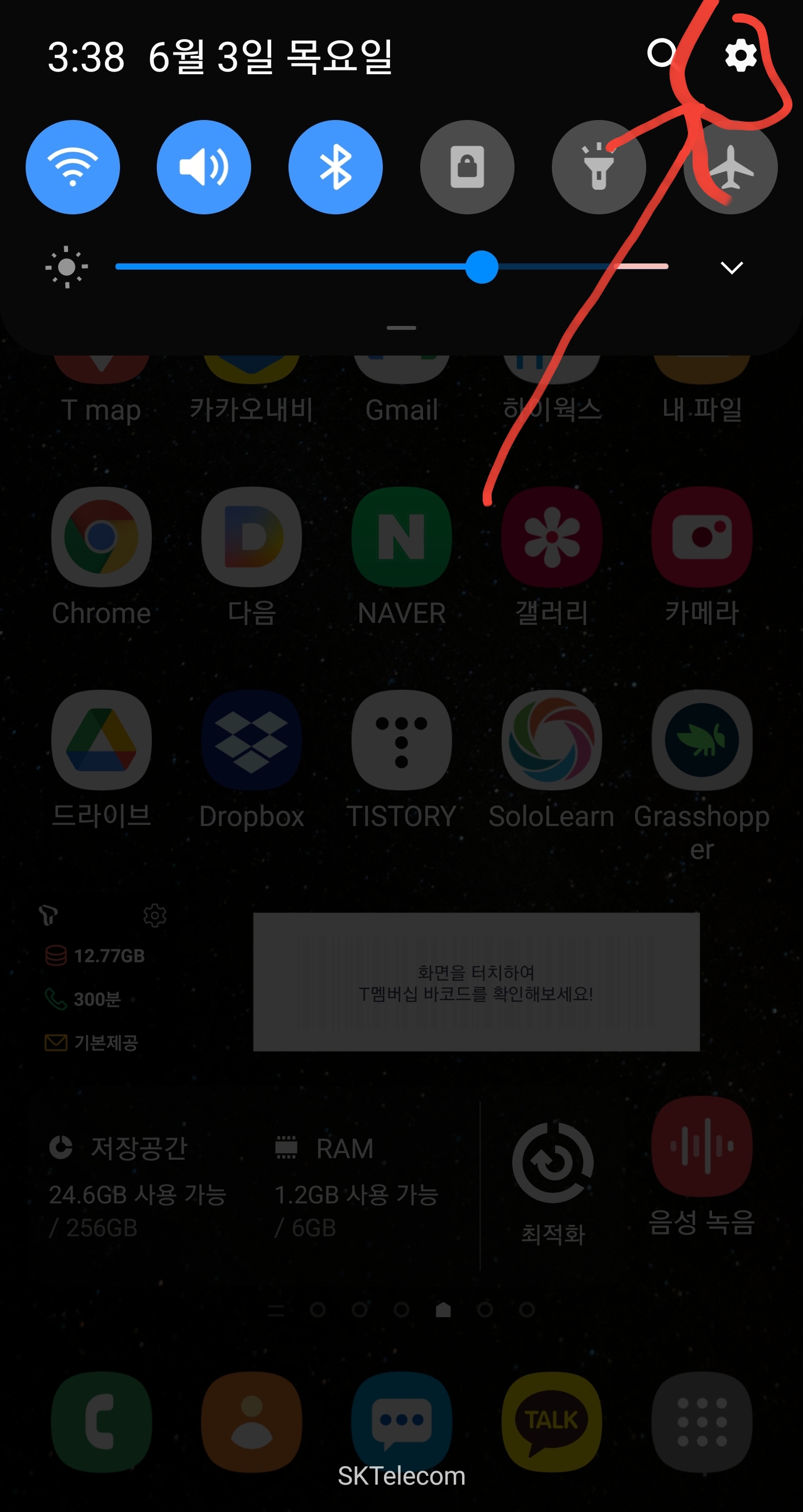 방법은 여러가지인데 저는 보통 화면 최상단 부분을 아래로 당겨 내린 뒤