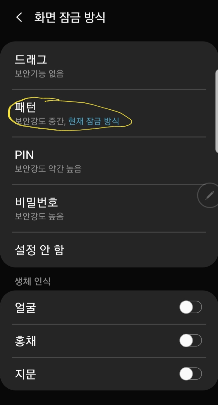 폰을 잠그는 여러가지 방식이 있다고 말씀드렸죠?