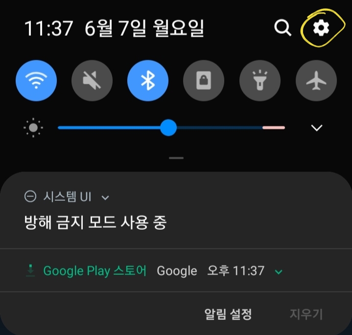 이곳에서 노란색으로 표시한 곳의 '톱니바퀴'를 눌러줍니다.