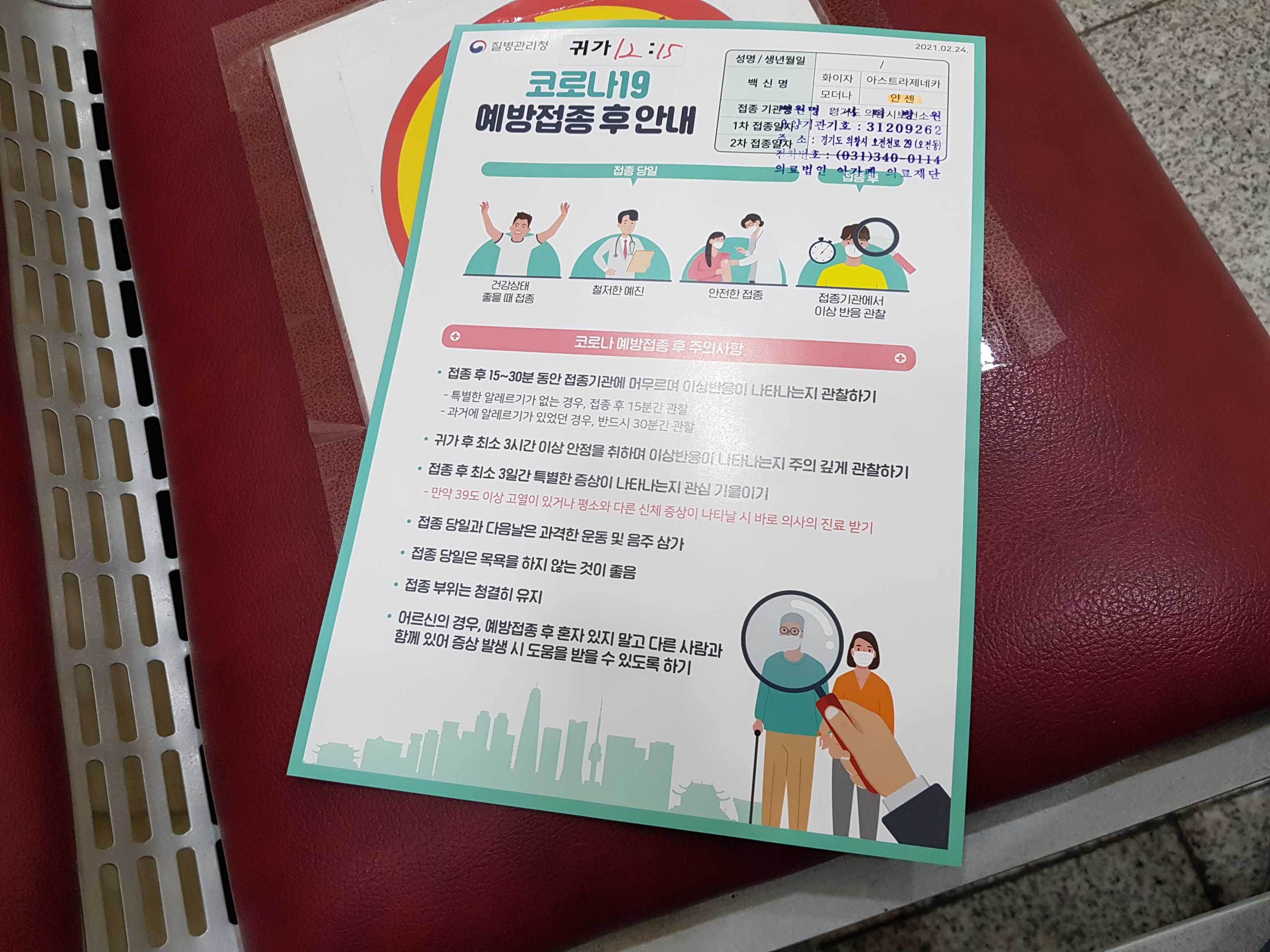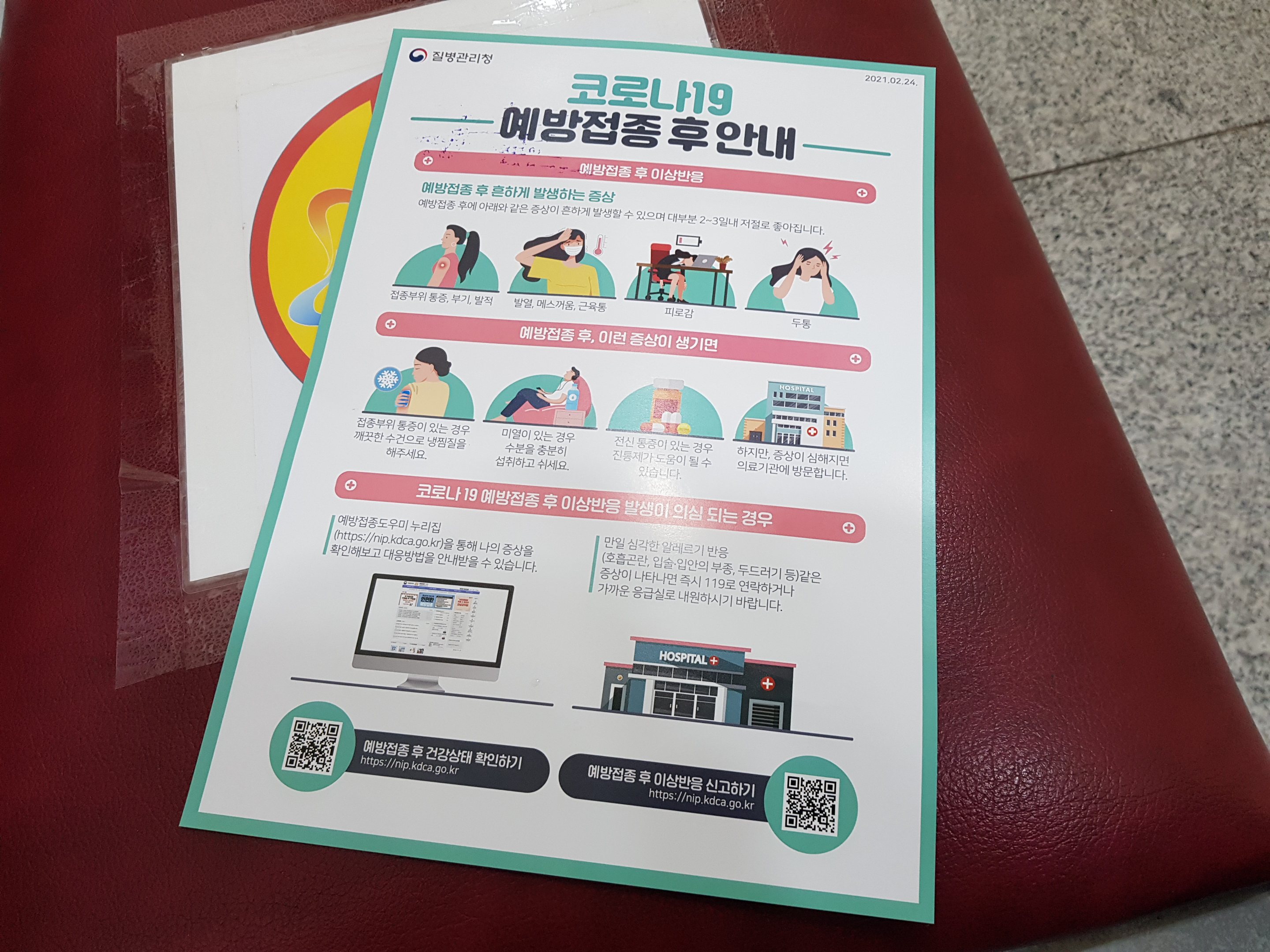 저는 접종을 완료한 뒤 당일 휴가였지만 회사에서 새로 오픈하는 영업소가 있어