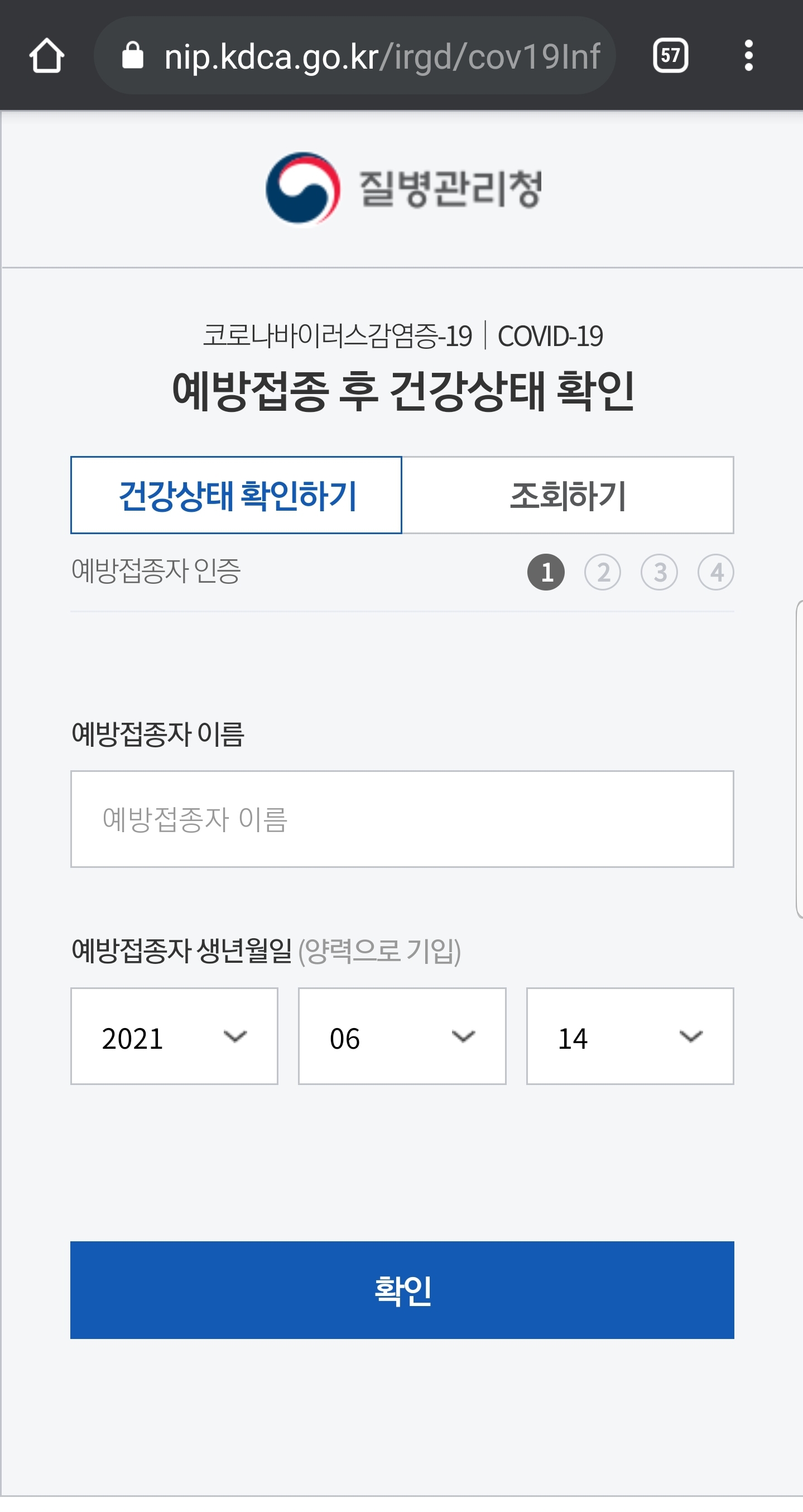 그리고 백신 접종 후 3일이 되던 오늘 아래와 같이 질병관리청에서 접중 후 건강상태 확인 문자를 보내줍니다.