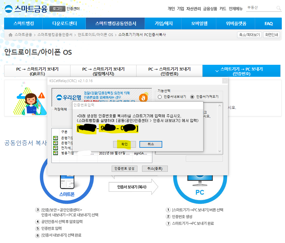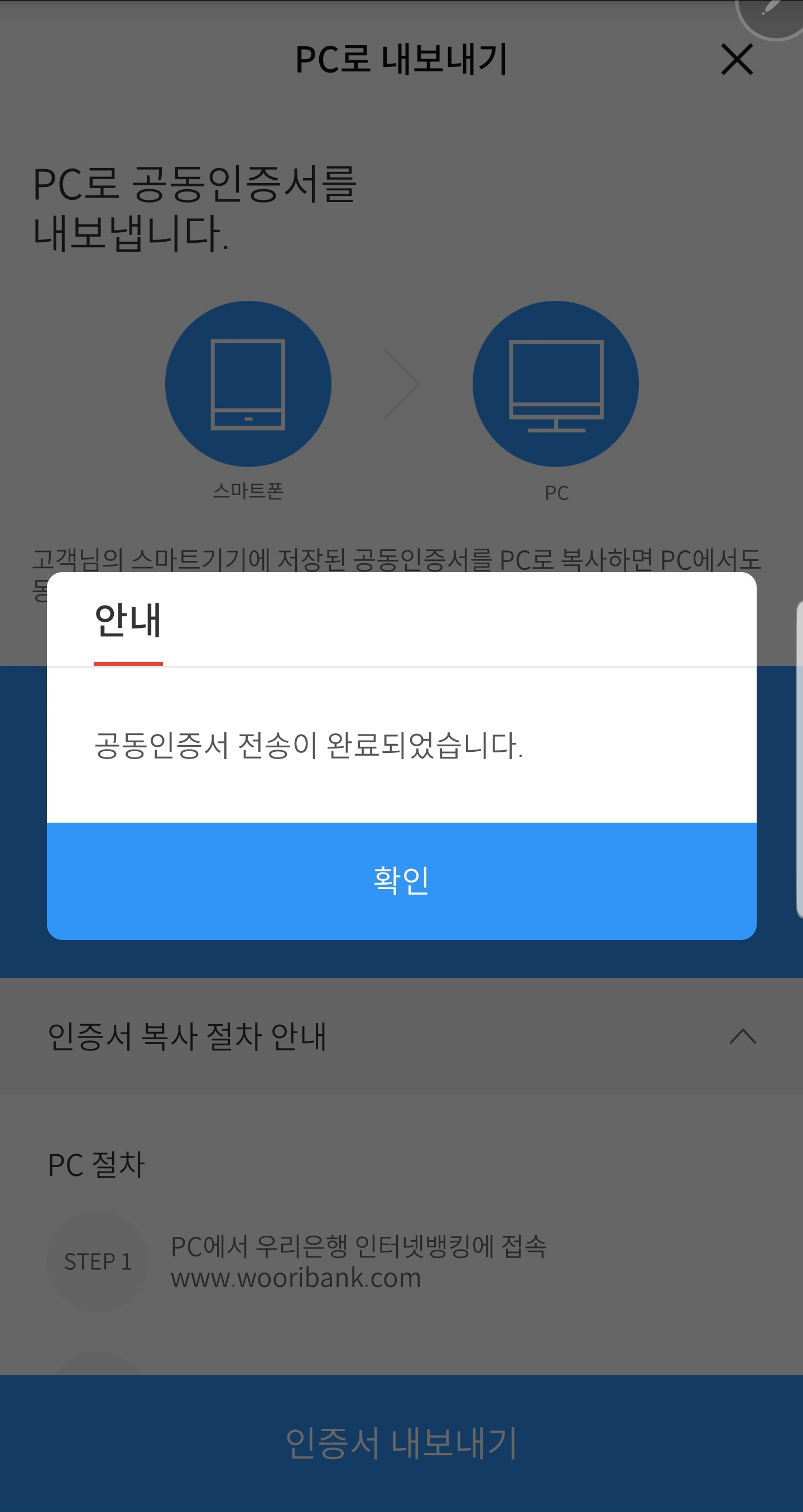 폰에서 컴퓨터로 공인인증서 복사하기(우리은행 편)