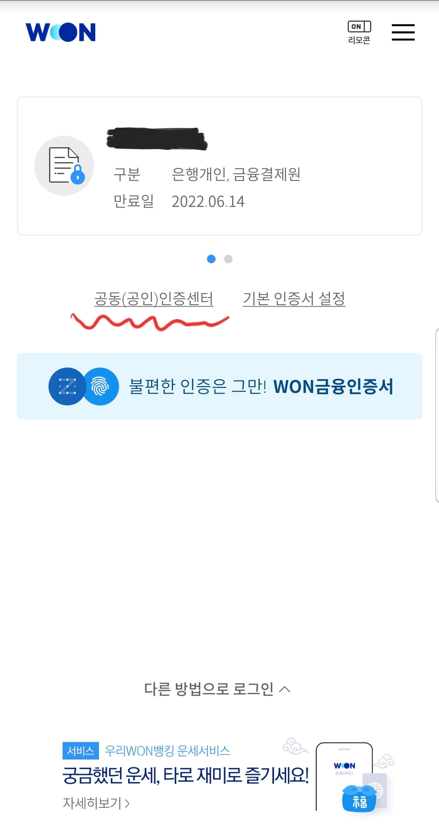 컴퓨터에서 인증서를 통해 로그인을 한 번 해보면 됩니다.