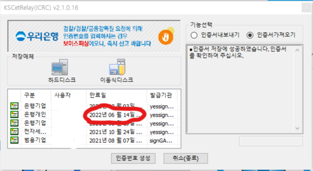 이 숫자만 제대로 입력하면 공인인증서 복사가 이루어지게 되는 것이죠.