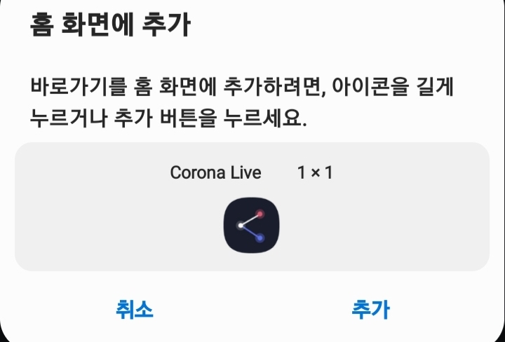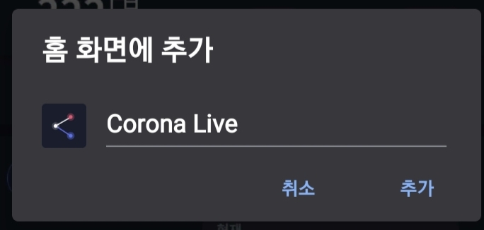 그러면 아래와 같이 '홈 화면에 추가' 화면이 나오는데 이대로 추가를 해도 되고