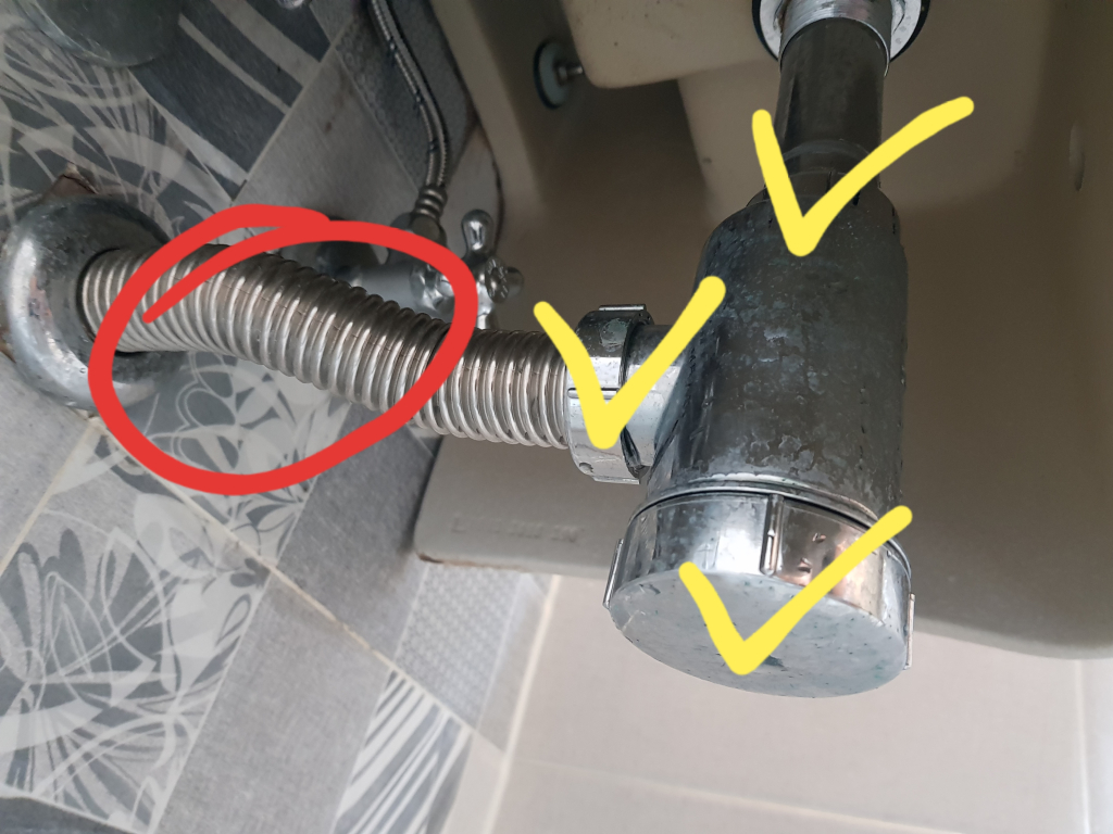 마지막으로 벽으로 이어지는 자바라 주름관이 약간 올라갔다가 내려가는 방식이었는데