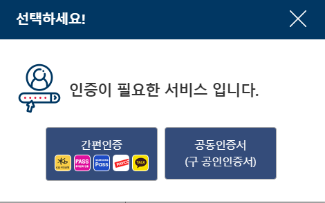 내 컴퓨터면 공인인증서가 들어 있을테니 사용하시면 되고 그렇지 않으신 분들은 간편인증을 통해서 해주면 됩니다.