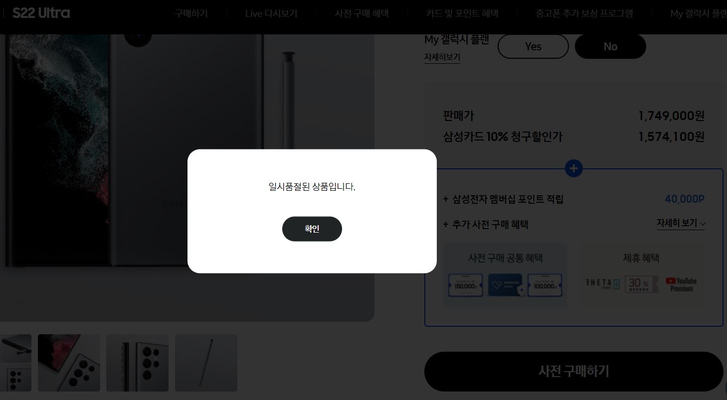 삼성 공식 홈페이지에만 살 수 있었고 지금은 매진...