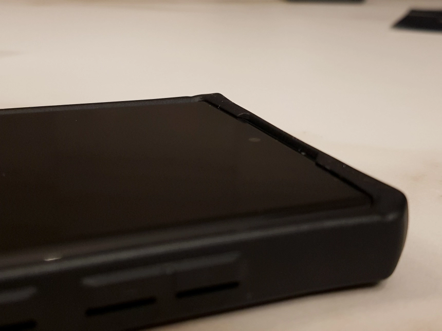 워낙 이전 세대의 폰들과 비교했을 때 렌즈가 많이 돌출되어 있다보니 렌즈부 주변의 고저차를 더 줘야 하는게 아닌가 싶다가도 노트8+uag를 비교해보니 훨씬 더 깊은 곳에 렌즈를 둔 것이 확인 됩니다.