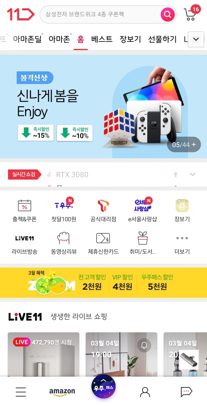 아마존, 알리익스프레스 등 여러 해외 쇼핑몰에서 물건을 구입할 일이 많다보니 자연스럽게 11번가와 SKT에서 밀고 있는 '우주패스'라는 것에 관심이 갔고 결국 가입을 했습니다. 우주패스는 구독 개념으로 월정 수수료를 내고, 아마존에서 판매하는 물건을 11번가와 협업을 통해 보다 빠르고 저렴하거나 무료배송으로 보내주는 서비스를 제공합니다.