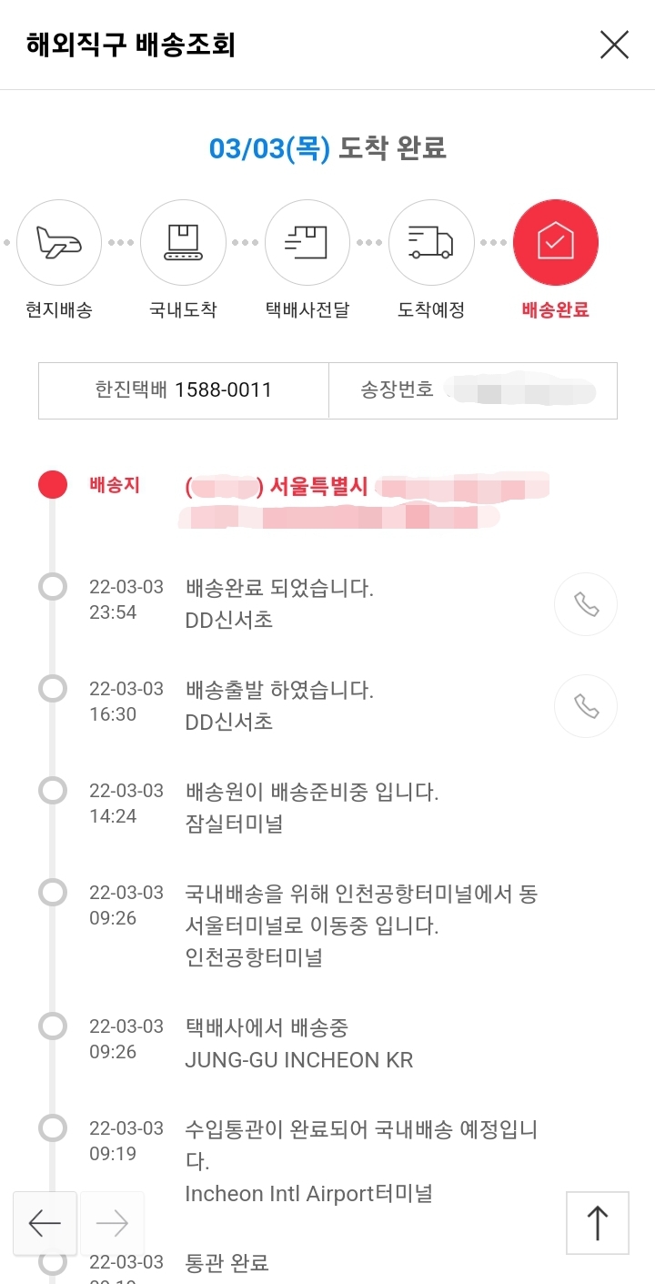 2월 28일에 구입을 했고 잊고 있었는데 3월 3일 오후에 당일 중 배송될거란 메시지를 받게 됩니다. 해당 물건은 미국 LA에서 넘어온 물건인데 3일만에 받을 수 있다니 아주 놀라웠죠. 물건을 회사로 주문했는데 저녁 11시가 넘은 시간에 배송완료 메시지를 받았고, 회사 건물은 보안이 걸려있을테니 아마 길거리에 던지고 갔겠지만 100만원이 넘는 전자기기나 심지어 현금이 가득든 지갑으로 자리를 맡아두는 대한민국의 정서상 도둑질에 의한 분실은 크게 걱정하지 않았습니다.
