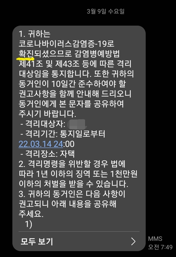 그 다음날 다시 출근하자마자 다시 자가진단키트로 검사를 해보니 희미하게 양성 반응이 나왔고, 혹시 몰라 주민등록등본을 하나 출력한 뒤(아내의 pcr검사를 위해) 바로 보건소로 이동하여 pcr검사(8일 오전 11시경)를 진행, 9일 아침 7시가 좀 넘은 시각에 확진 판정을 받게 되었습니다.