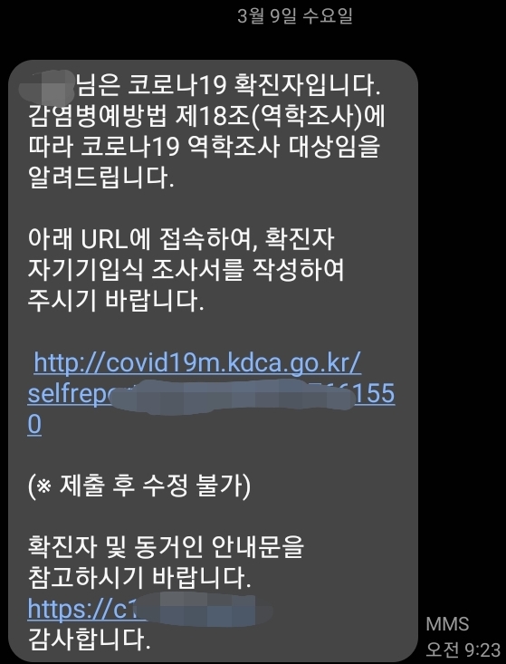 아침밥을 먹는데 이렇게 문자가 옵니다. 역학조사를 하라는 내용이고, 신분조사, 증상, 동거인 조사 등을 하게 됩니다. 이제 동선을 조사하지는 않네요. 다만 이럴 때 천벌을 받아 마땅할 보이스피싱 문자도 함께 날아올 가능성이 있으니, URL주소를 한 번 확인하고 나서 하시길 권해드릴게요.