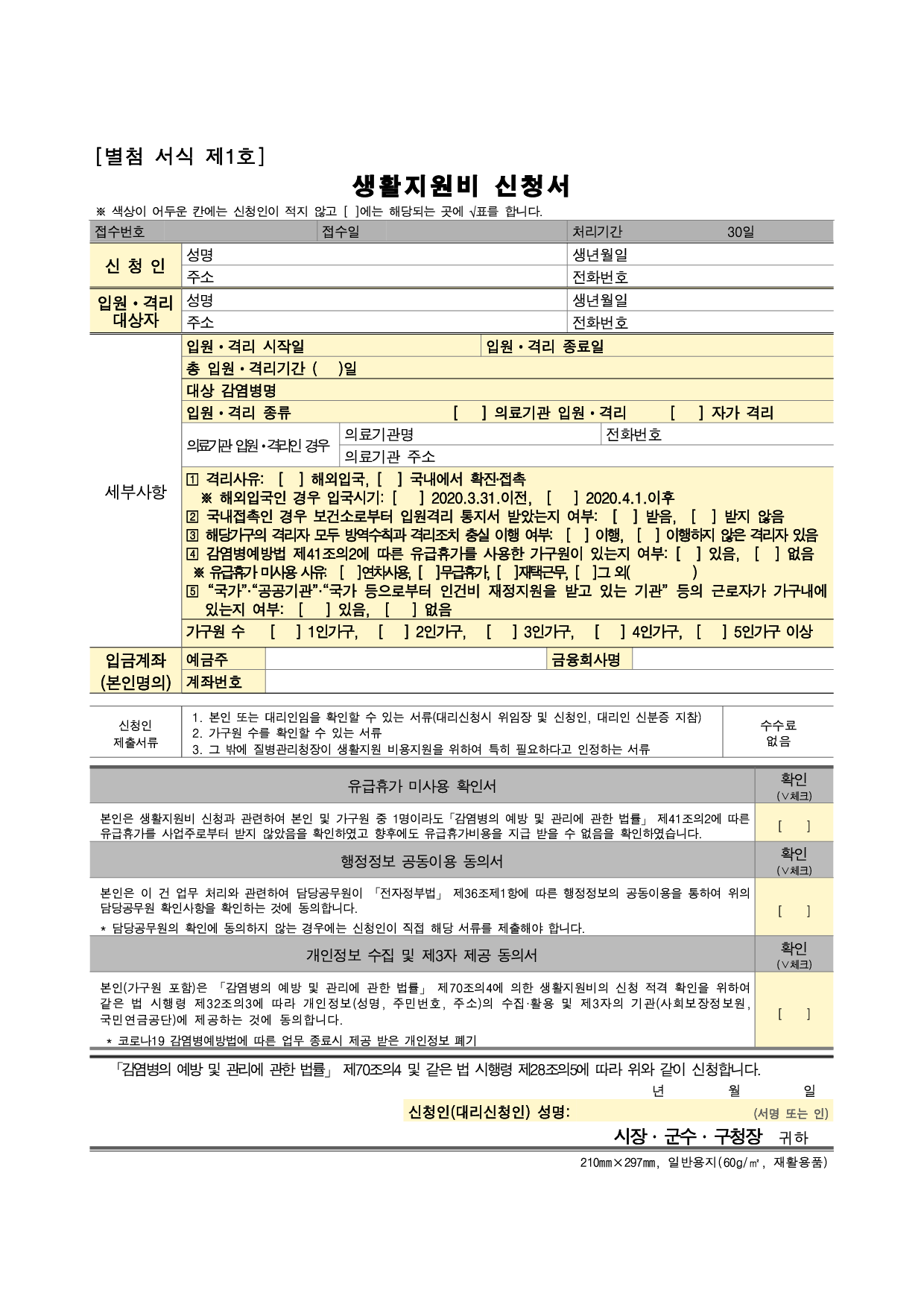 생활지원비 신청서에 보면 유급휴가 미제공 동의서도 제출해야 하고,