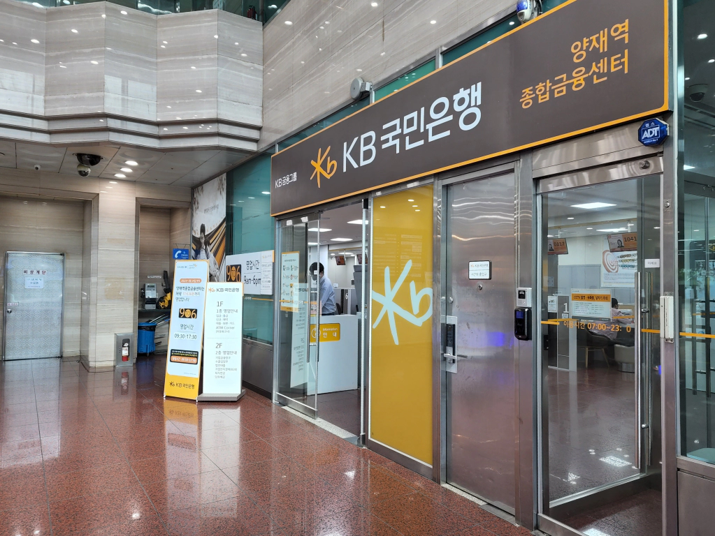 우선 2번 출구 방향 대로변에 있는 KB국민은행 양재동 지점(강남대로 273, 송남빌딩)으로 갔습니다.