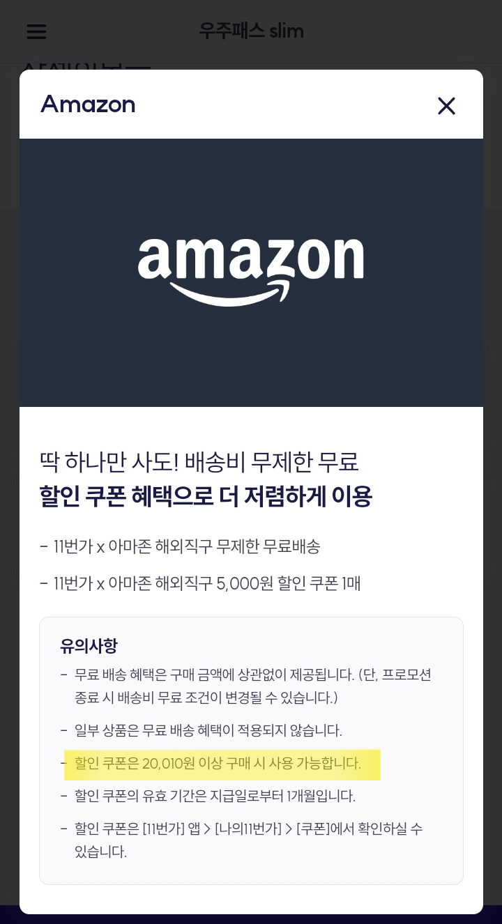 단편적인 예로, 아마존에서 매월 사용할 수 있는 쿠폰 중 5,000원 쿠폰이 있는데 이 쿠폰의 사용 조건을 두고 어디에서는 20,000원 이상/20,010원 이상/20,100원 이상이라고 다 다르게 명시를 해놨습니다.